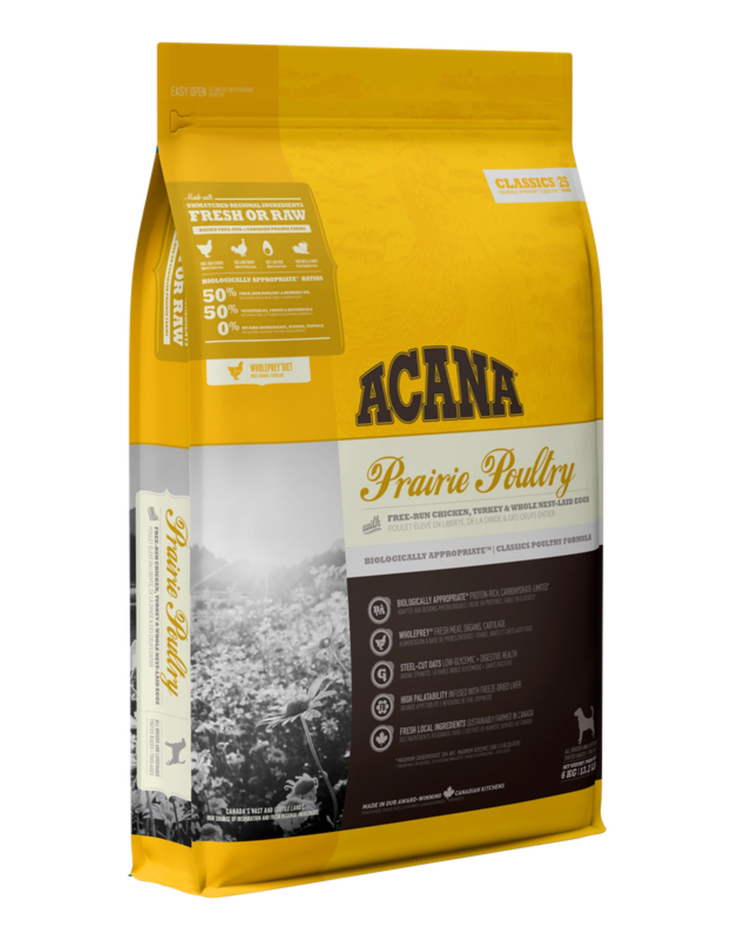 Chicken meal (25%), steel-cut oats (23%), fresh chicken meat (5%), fresh chicken giblets (liver, heart, kidney) (5%), whole red lentils, whole green peas, whole green lentils, fresh turkey meat (4%), fresh cage-free eggs (4%), chicken fat (4%), whole garbanzo beans, whole yellow peas, whole oats, herring oil (3%), sun-cured alfalfa, lentil fibre, dried brown kelp, fresh pumpkin, fresh butternut squash, fresh parsnips, fresh green kale, fresh spinach, fresh carrots, fresh apples, fresh pears, freeze-dried chicken liver (0.1%), salt, fresh cranberries, fresh blueberries, chicory root, turmeric root, milk thistle, burdock root, lavender, marshmallow root, rosehips. ADDITIVES (per kg): Technological additives: tocopherol-rich extract of natural origin. Nutritional additives: Vitamin A: 7500IU, Vitamin D3: 500IU, Vitamin E: 100IU, Choline chloride: 500mg, Zinc chelate of amino acids hydrate: 100mg, Vitamin B5: 12.5mg. Zootechnical additives: Enterococcus faecium NCIMB10415: 600×10^6 CFU.