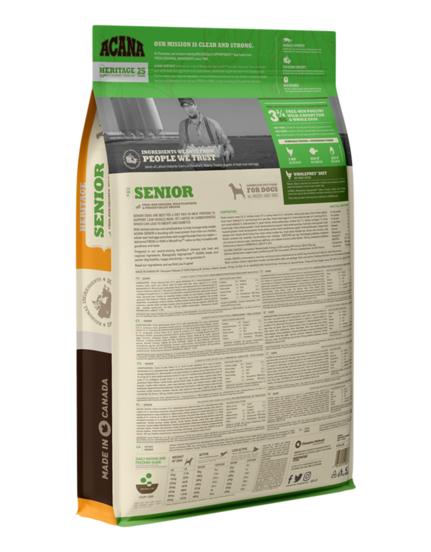 Fresh chicken meat (16 %), chicken meal (15 %), turkey meal (14 %), red lentils, whole green peas, fresh chicken giblets (liver, heart, kidney) (4 %), herring meal (4 %), pea fiber, fresh eggs (4 %), fresh whole flounder (4 %), herring oil (2 %), sun-cured alfalfa (2 %), field beans (2 %), green lentils, whole yellow peas, chicken fat (1 %), chicken cartilage (1 %), dried brown kelp, fresh whole pumpkin, fresh whole butternut squash, fresh whole parsnips, fresh kale, fresh spinach, fresh mustard greens, fresh turnip greens, fresh whole carrots, fresh apples, fresh pears, freeze-dried chicken liver, freeze-dried turkey liver, fresh whole cranberries, fresh whole blueberries, chicory root, turmeric, milk thistle, burdock root, lavender, marshmallow root, rosehips. ADDITIVES (per kg): Technological additives: tocopherol-rich extract of natural origin. Nutritional additives: zinc chelate of amino acids hydrate: 100 mg. Zootechnical additives: Enterococcus faecium NCIMB10415: 600×10^6 CFU.