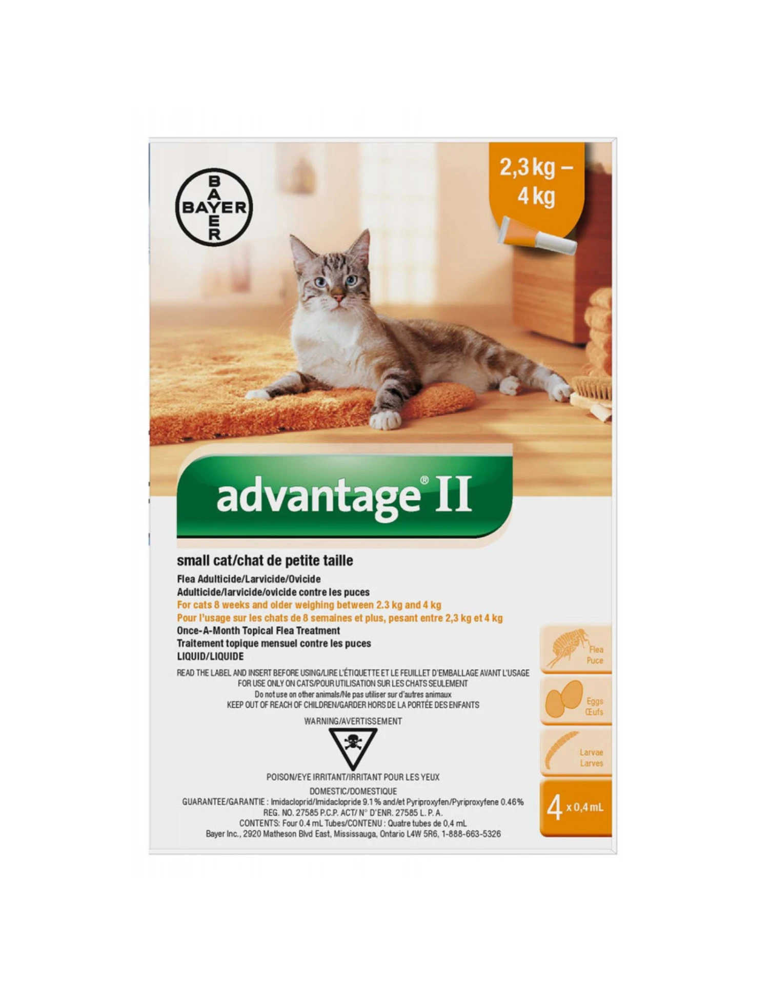 Advantage®II kills fleas within two hours and remains effective for up to four weeks.