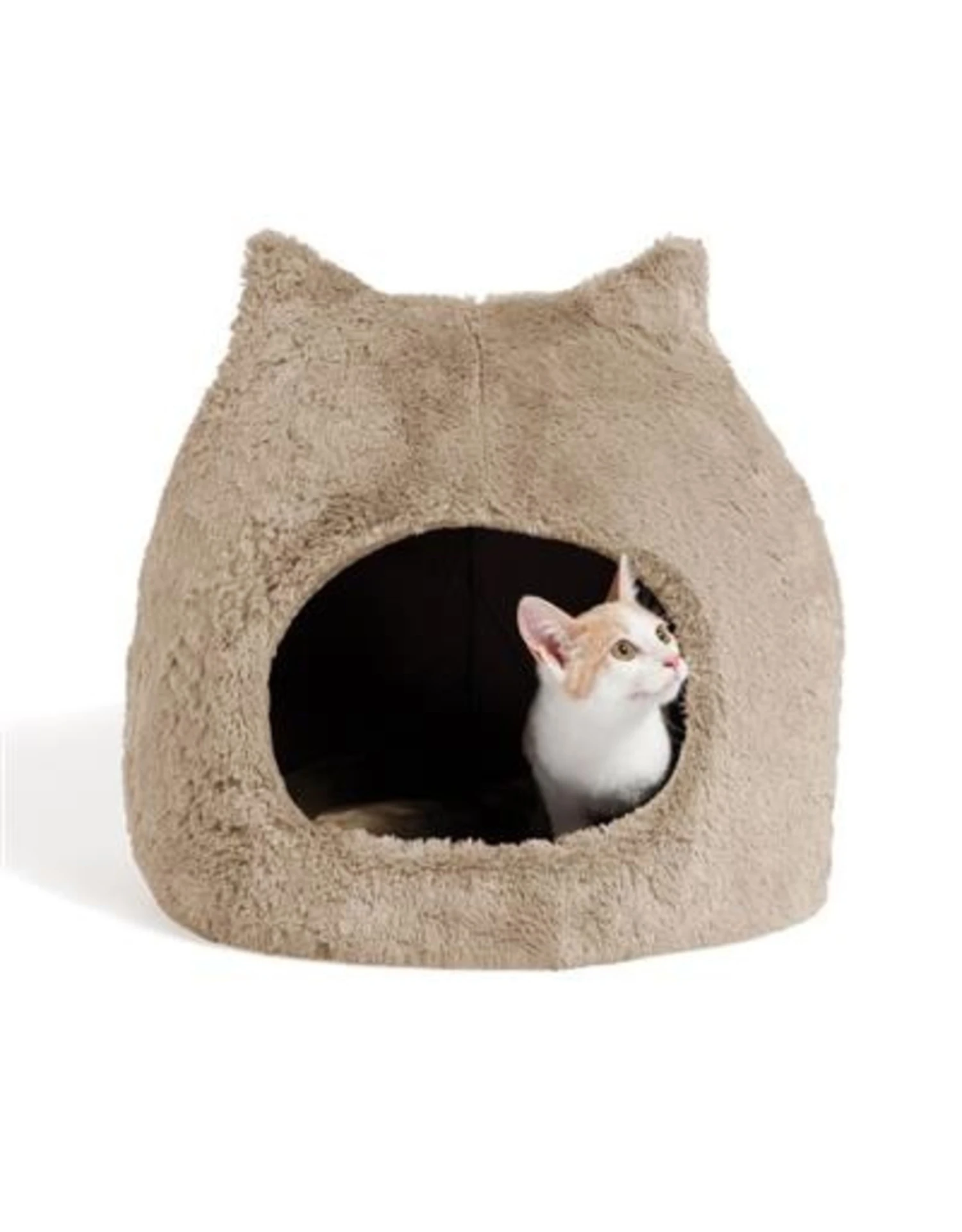 Meow Hut Covered Dog & Cat Bed: Made for the Ultimate Snuggling Experience. The Best Friends by Sheri Meow Hut in Fur for dogs & cats is designed to offer your pet a safe and secure place to rest enveloping them in calming comfort. The soft padded foam provides optimal support for joints and a comforting place for relaxation. The ultra-soft vegan fur material offers a cozy snuggle reminiscent of their mother’s fur. The 360 degree coverage makes pets feel secure offering total coverage for dogs and cats who like to burrow snuggle and hide. The entire bed is machine washable and dryable for easy cleaning and convenience. To machine wash first remove the insert foam and zip the cover shut. Shake off any loose debris and place the cover in the wash on the gentle cycle. Tumble dry low or air dry to prolong life. Do not bleach. With 5 designer colors to choose from and a cute cat ear top your indoor pet bed will blend seamlessly into any room of your home while adding a fun pop of personality. We recommend the Standard sized Meow Hut for cats and dogs up to 15lbs and the Jumbo sized Meow Hut for cats and dogs up to 25lbs.