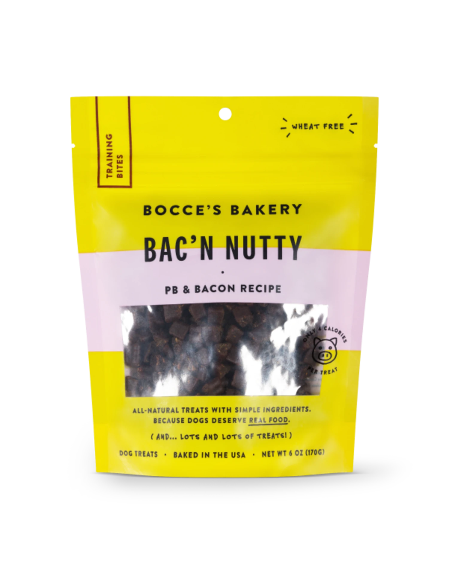 Bocce’s Bakery Bacons Nutty Training Bites say it all. These perfectly sized training bites are baked in the USA using 100% real ingredients including Peanut Butter & Bacon. So whether your dog is being rewarded for sitting properly, posing for Instagram, or simply in need of a little daily bribing, they’ve got you covered. Because training can mean lots and lots and lots of treats!