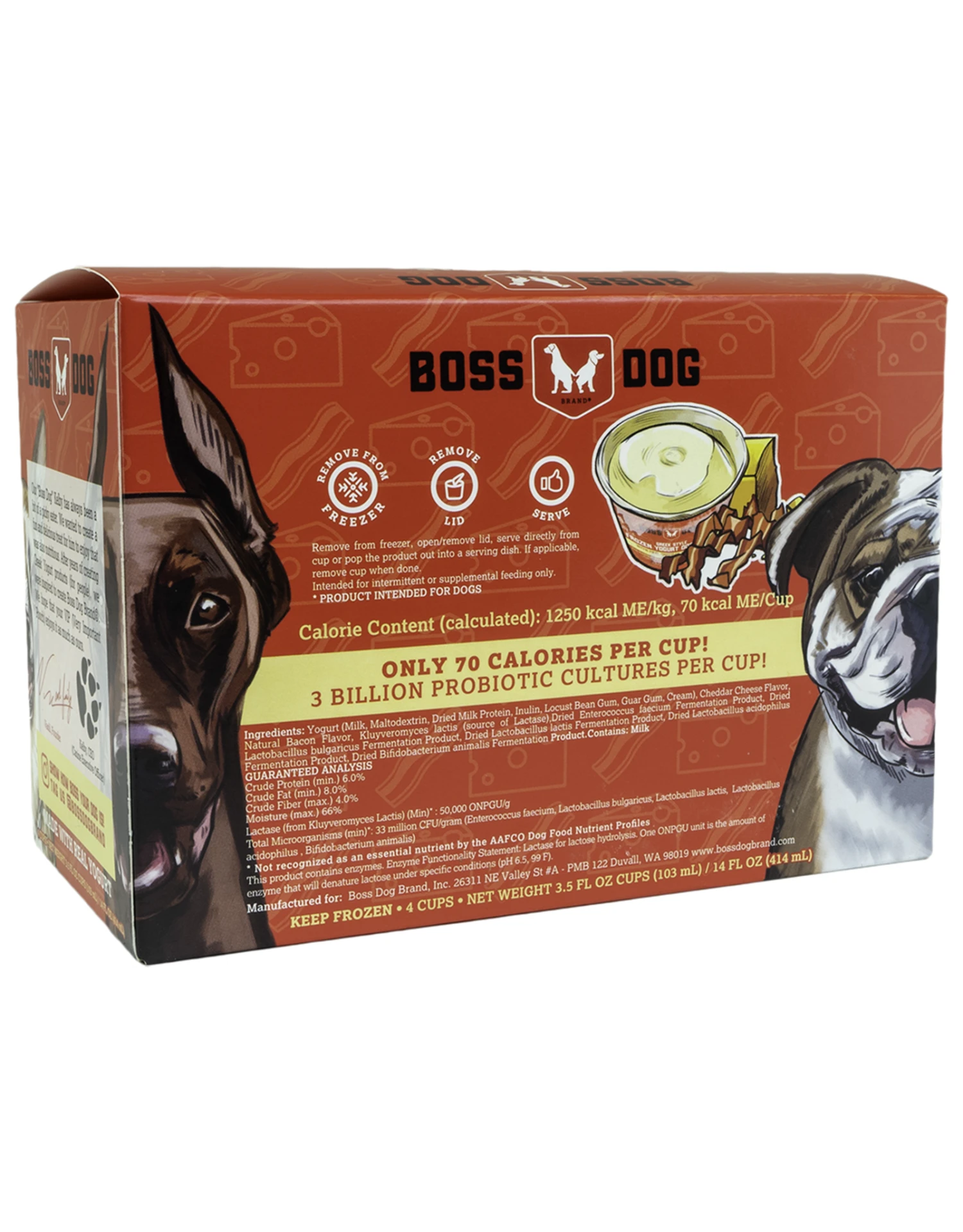 The irresistible flavor of Real Cheddar & Bacon combine to create a flavor your boss dog is sure to love! Your dog will be able to “sniff out” this treat as soon as you open a cup. Stock your freezer with this snack that’s worth billions (of probiotics, that is.)