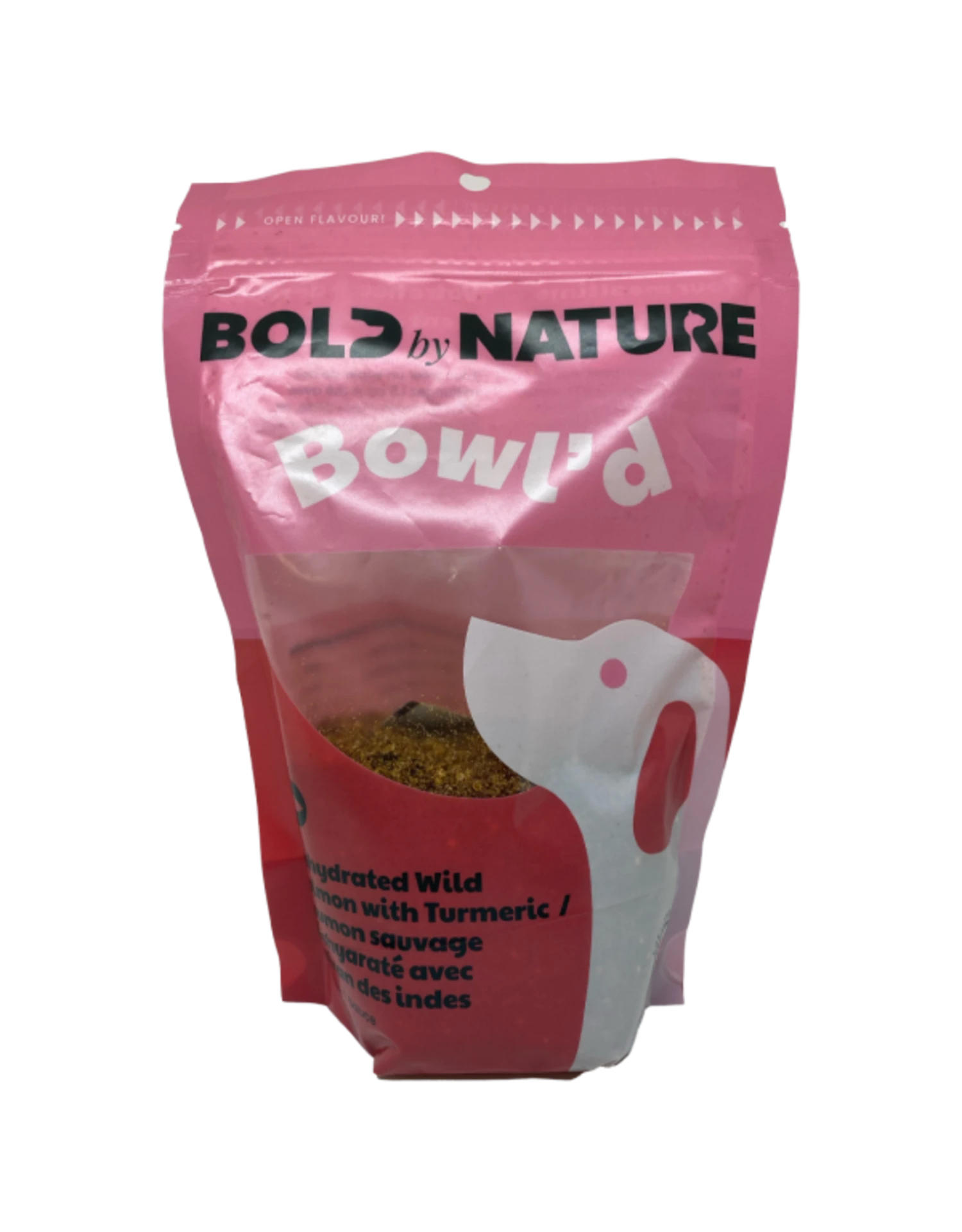 Bold by Nature Bowl’d is a full-of-flavour and nutritiously delicious topper for your pet’s meal. This dehydrated salmon topper adds omega 3 and 6 fatty acids as well as a boost of flavour, vitamins, and minerals. To make a super bowl, mix 1.5 tsp with warm water, broth or goat milk to create a delicious gravy.