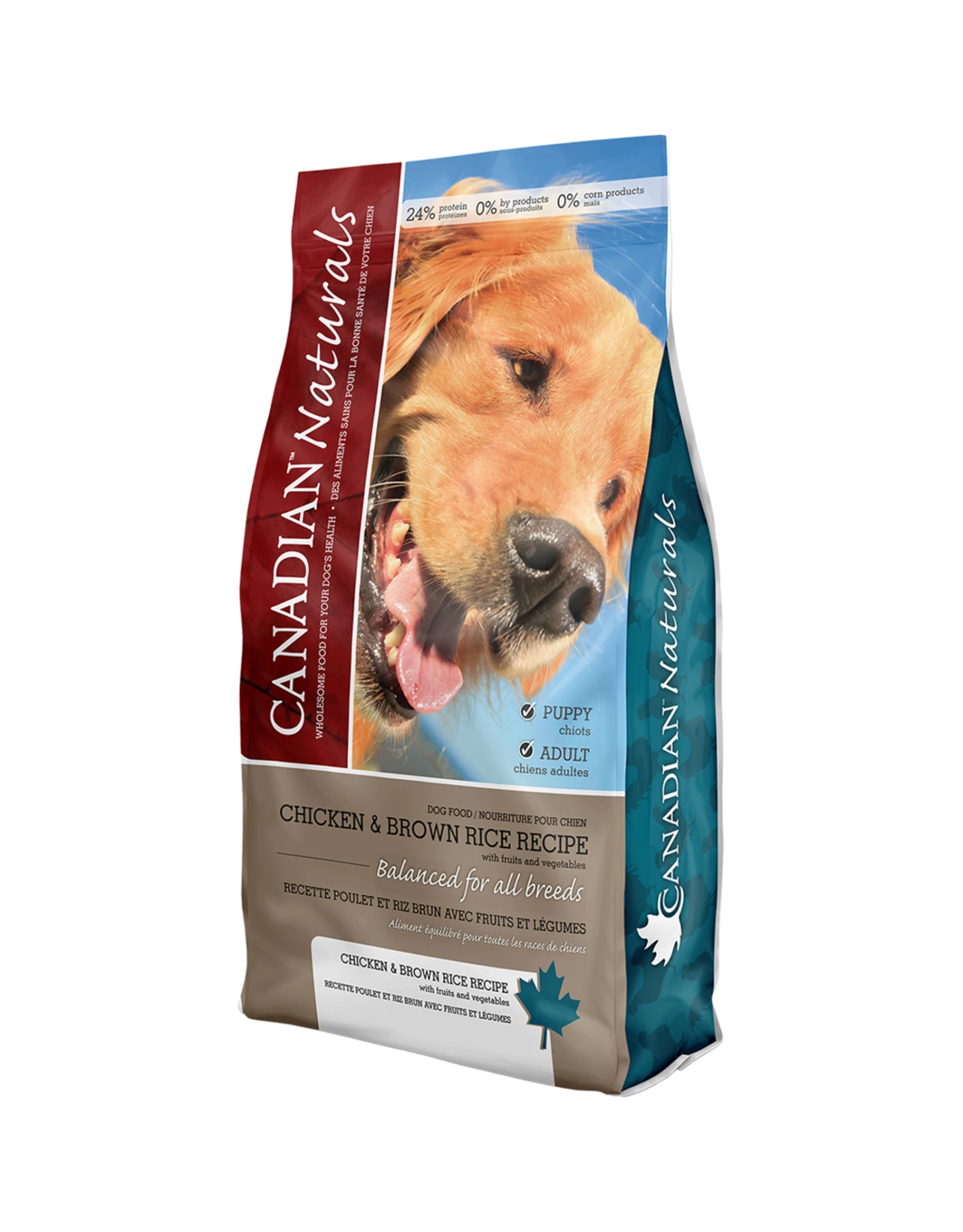 Canadian Naturals is seasoned with a host of herbs and supplements and is designed to meet a dog’s nutritional needs from puppy hood through adulthood. It also contains a wide variety of fruits and vegetables including apples, blueberries, pears, bananas, sweet potatoes, broccoli and spinach, all offering tremendous health benefits. Canadian Naturals Chicken & Brown Rice Recipe will give your dog a balanced holistic diet. This formula includes a variety of nutritious fruits and vegetables which combine to provide many health benefits at a reasonable price.