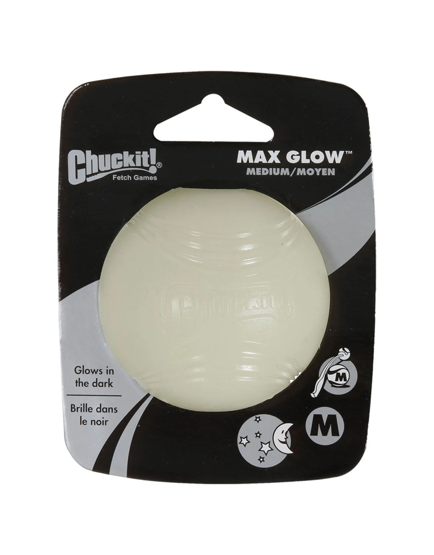 The Chuckit!® Max Glow® Ball gives your dog something to jump for. This durable rubber ball glows in the dark to allow the game to keep going when the sun goes down. It charges quickly under any bright light taking just five minutes to generate 20 to 30 minutes of glowing playtime (no batteries or cords needed). Easy to clean and your dog will love this textured grip-able rubber ball made just the right size to use perfectly with the medium Chuckit! Sports Launcher (sold separately).