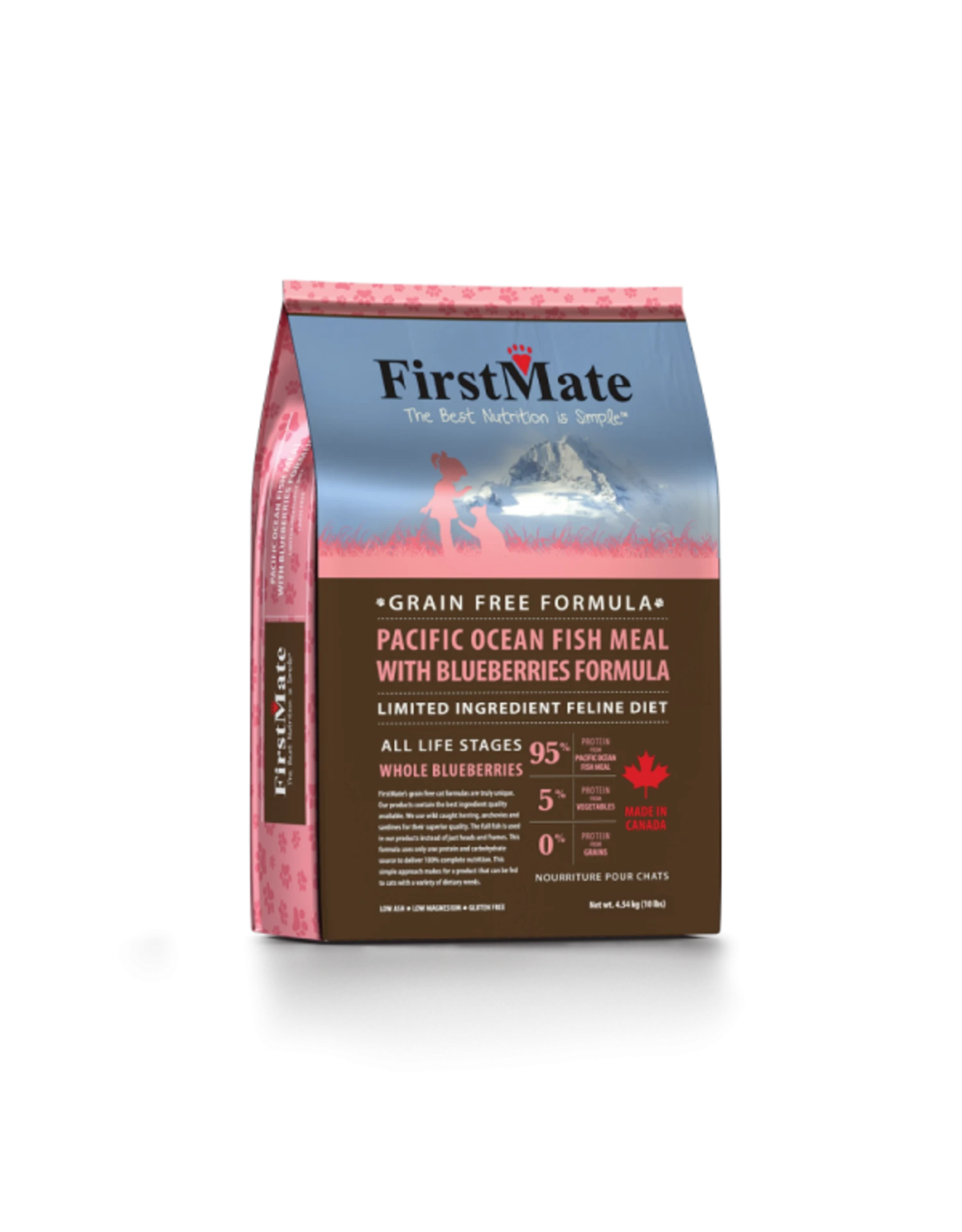 FirstMate Pacific Ocean Fish Meal with Blueberries formula is ideal for cats and kittens of all-life-stages. Wild caught herring, anchovies and sardines are the primary source of protein. The full fish is used rather than heads and frames. FirstMate Pacific Ocean Fish Meal with Blueberries is a low carb, grain & gluten free formula that is rich in antioxidants and low in ash & magnesium.