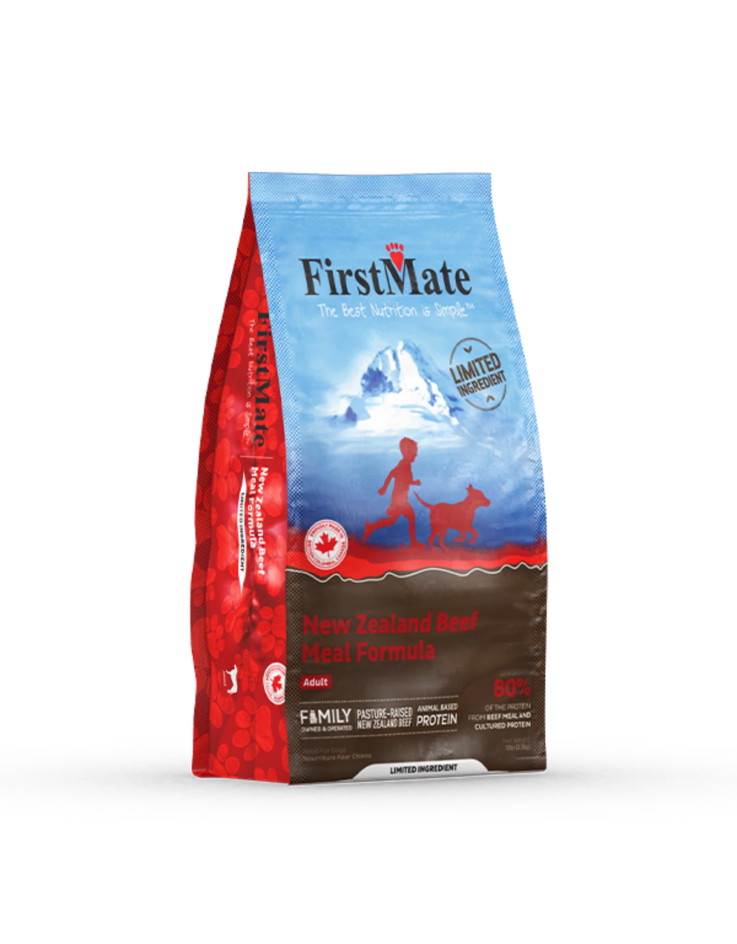 FirstMate’s Beef uses pasture-raised New Zealand Beef without added hormones or antibiotics. This limited ingredient diet is great for dogs with allergies and diet restrictions. Fewer ingredients make this formula easy on digestion. The chicken fat used in FirstMate Pet Foods is processed free of protein, eliminating the risk of allergies derived from chicken.