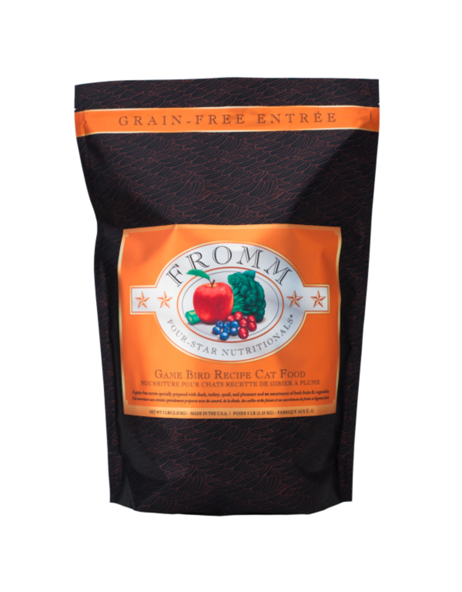 Fromm Four-Star Cat Grain-Free Game Bird Entrée features a blend of duck, turkey, quail, pheasant and real Wisconsin cheese. This hearty, grain-free entrée contains no wheat, rice, rye, barley or triticale and thus does not present the gluten associated with these grains. Fromm Four-Star offers cats the variety they deserve. They’ve designed every recipe in their line to complement each other, allowing you to switch between & combine recipes. Your cat’s dining experience will never be the same again.