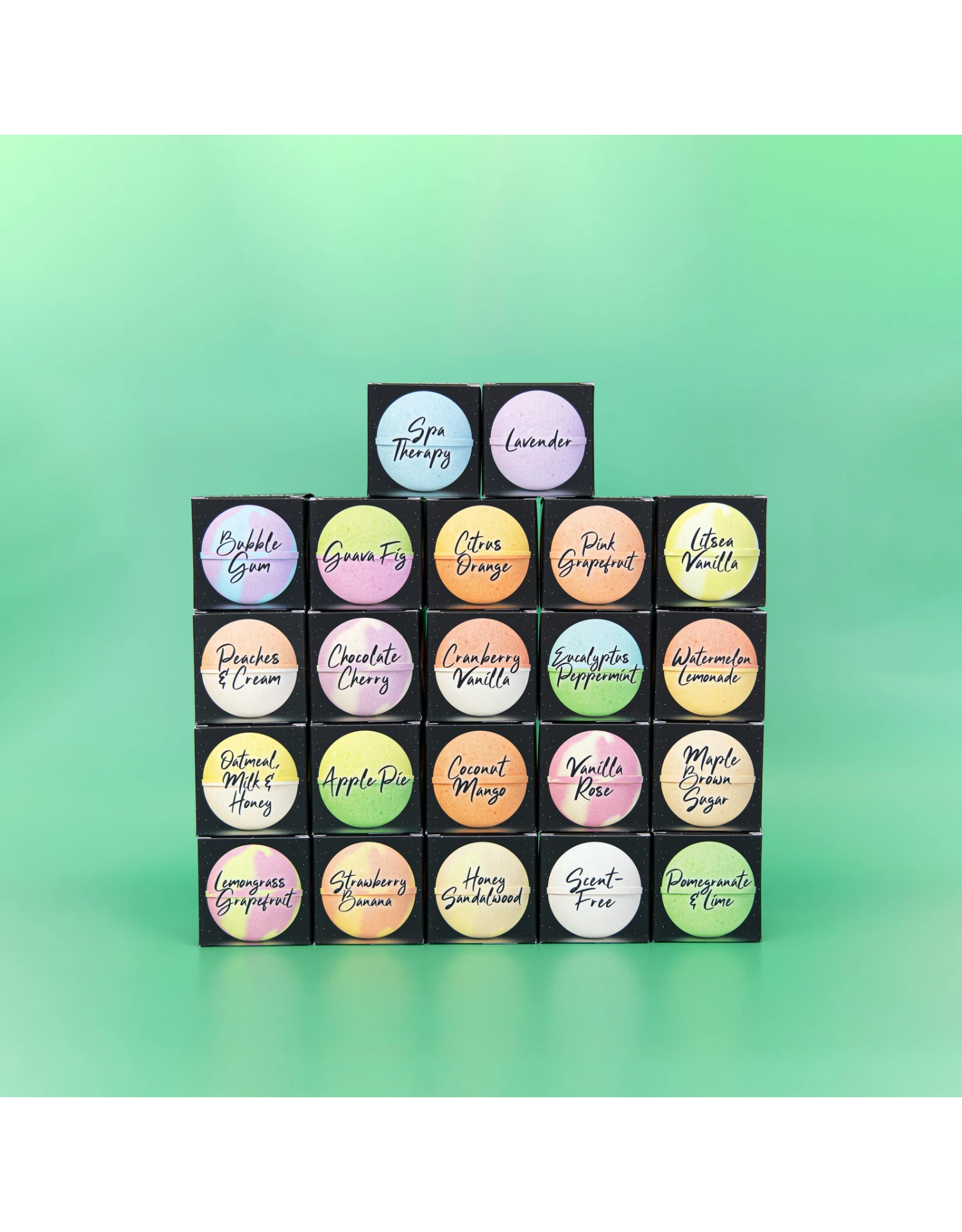 | Name/Scent | Lavender, Pomegranate Lime, Coconut Mango, Spa Therapy, Pink Grapefruit, Unscented, Honey Sandlewood, Litsea Vanilla, Lemongrass Grapefruit, Strawberry Banana, Bubble Gum, Maple Brown Sugar, Vanilla Rose, Chocolate Cherry, Citrus Orange, Watermelon Lemonade, Peaches & Cream, Apple Pie, Eucalyptus Peppermint, Oatmeal Milk & Honey, Cranberry Vanilla, Guava Fig |