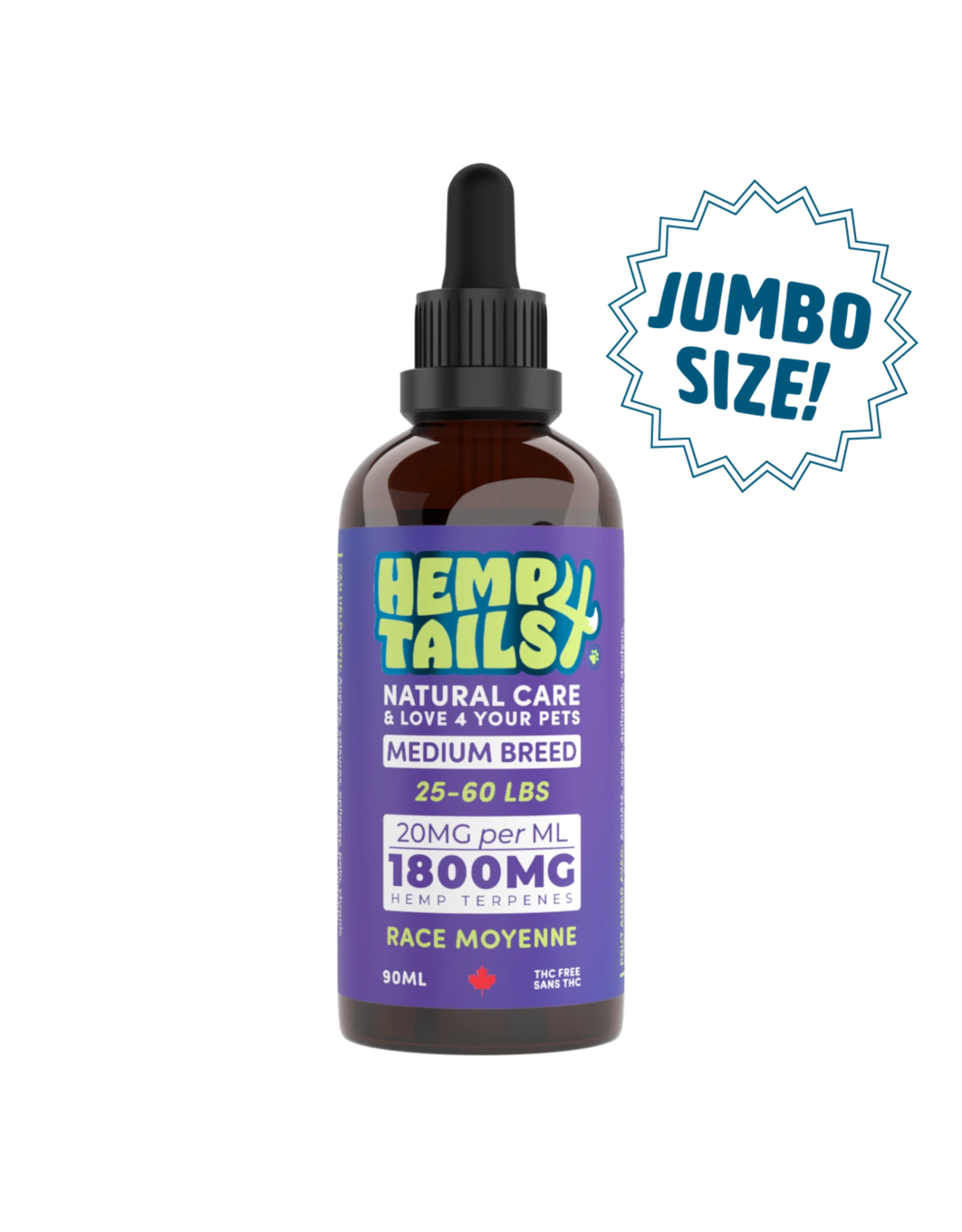 This 90ml Bottle contains 1800mg Hemp Terpenes and is recommended for medium pets (25-60lbs).