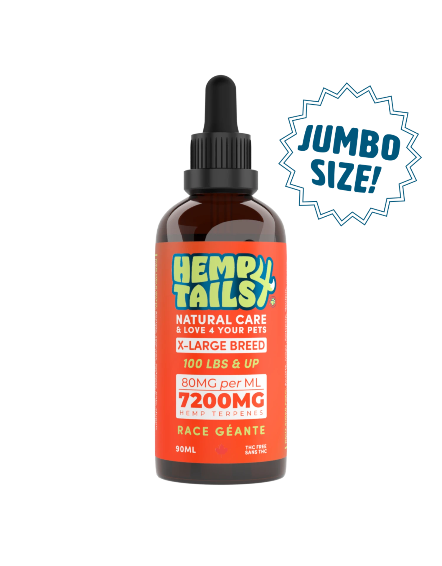 This 90ml JUMBO SIZE Bottle contains 7200mg Hemp Terpenes and is recommended for extra large pets (100bs & UP).