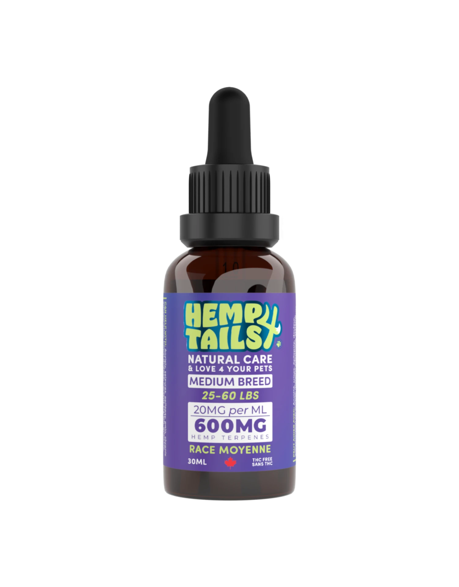 This 30ml Bottle contains 600mg Hemp Terpenes and is recommended for medium pets (25-60lbs).