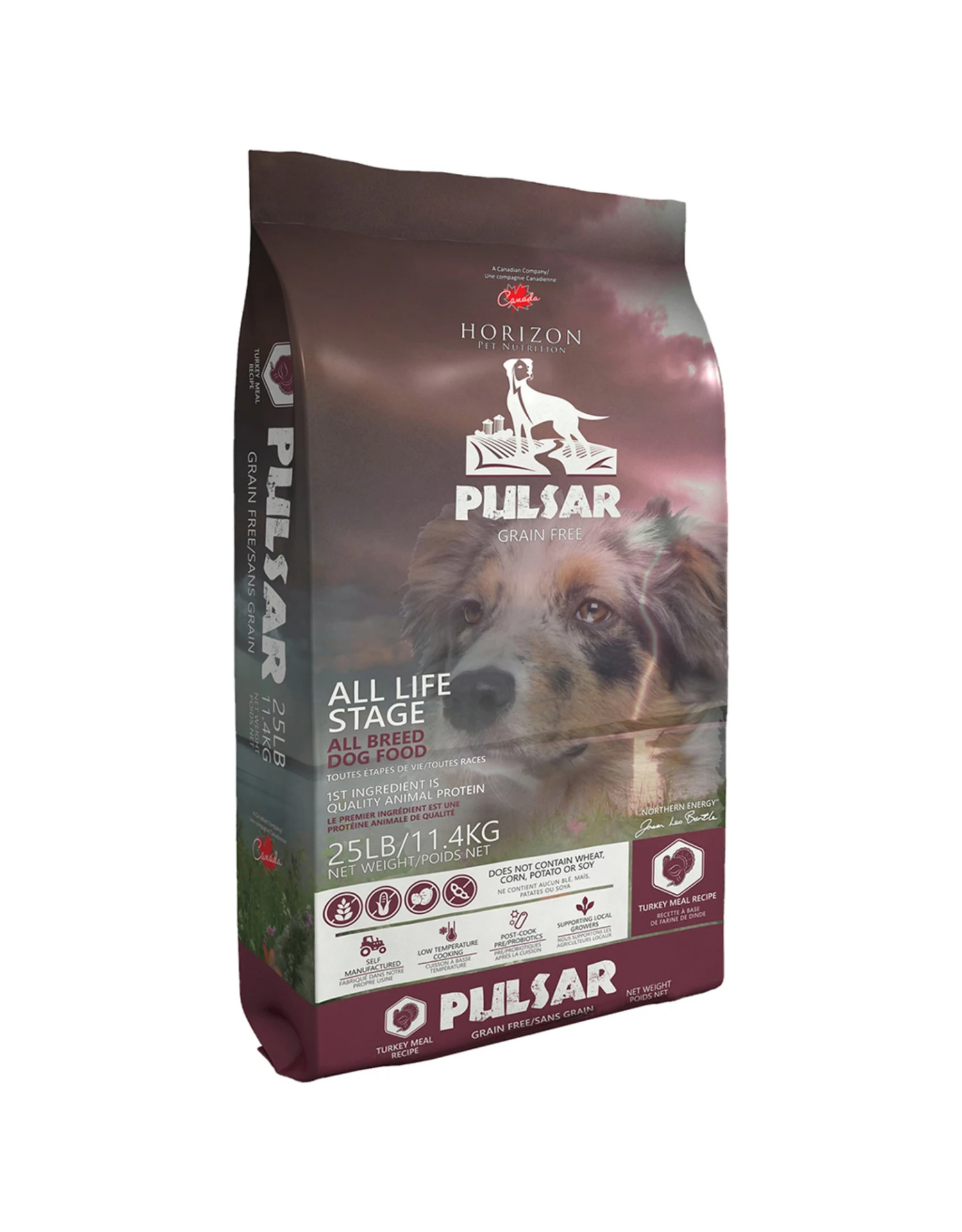 Horizon starts with an emphasis on animal protein. Steroid free and growth hormone free chicken, turkey and wild caught salmon are the cornerstone proteins in Pulsar.