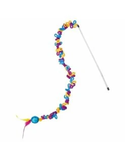 Kong Teaser Loopz has an extra-long wand and soft yarn rings that satisfy hunt and capture instincts. The chunky yarn rings provide a fulfilling reward while meeting stalking needs. A shiny ball and fluttery feathers give kitties an exciting visual target for pouncing while the ball’s crackling sound keeps cats interested. Kong North American Premium Catnip in the ball boosts mood, to keep kitties playing longer.