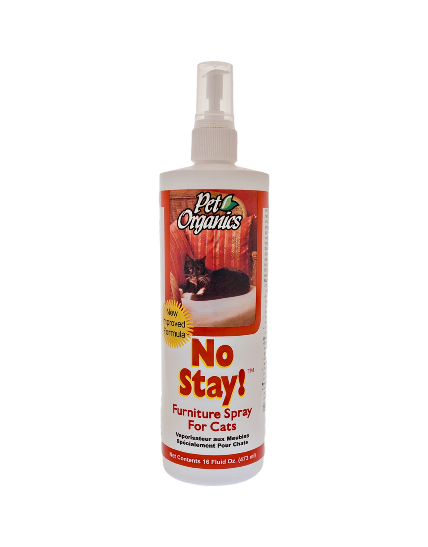 No Stay!™ Furniture Spray for Cats helps train cats to stay off the furniture and other undesired areas. When used as directed it discourages felines from returning to the treated area. Pet Organics No Stay!™ is a special blend of natural herbs that most cats find displeasing and prefer to avoid.