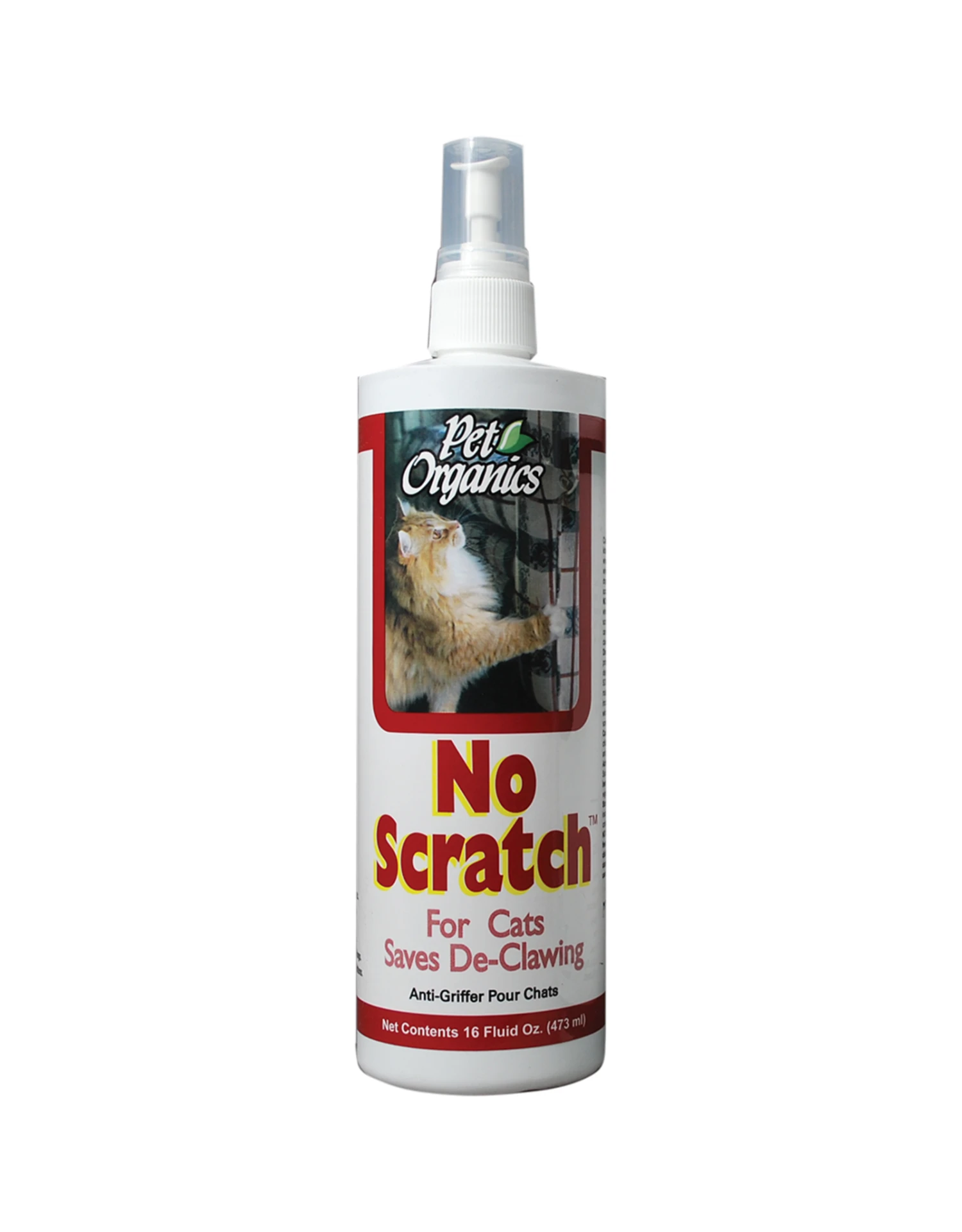 Helps train cats not to scratch furniture, carpets and drapes. Spray No Scratch on areas you wish to protect. A unique product that sprays on fabric surfaces and discourages cats innate desire to claw.