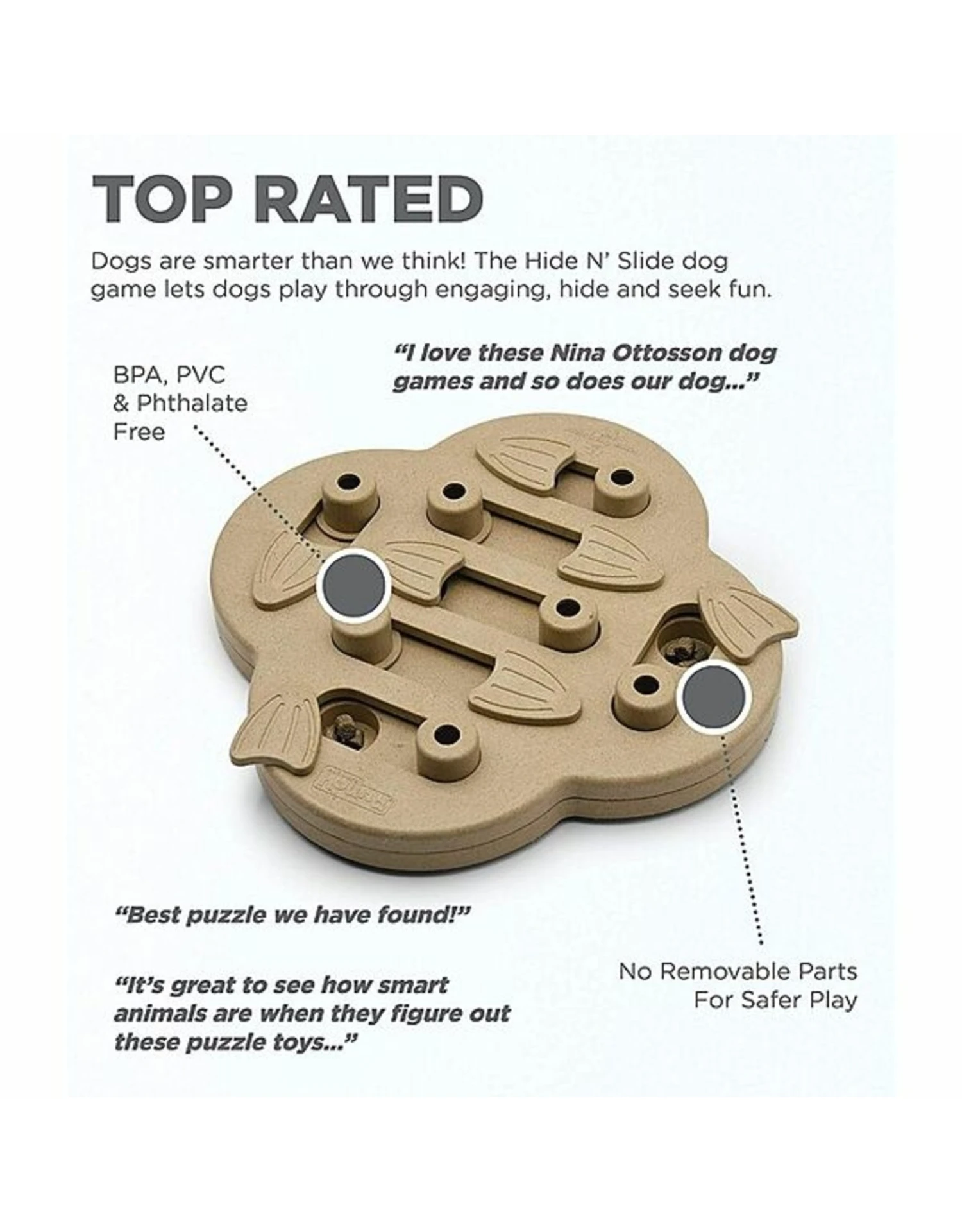 The Dog Worker dog puzzle is durably designed with built-in play pieces that don’t come out when your dog plays.