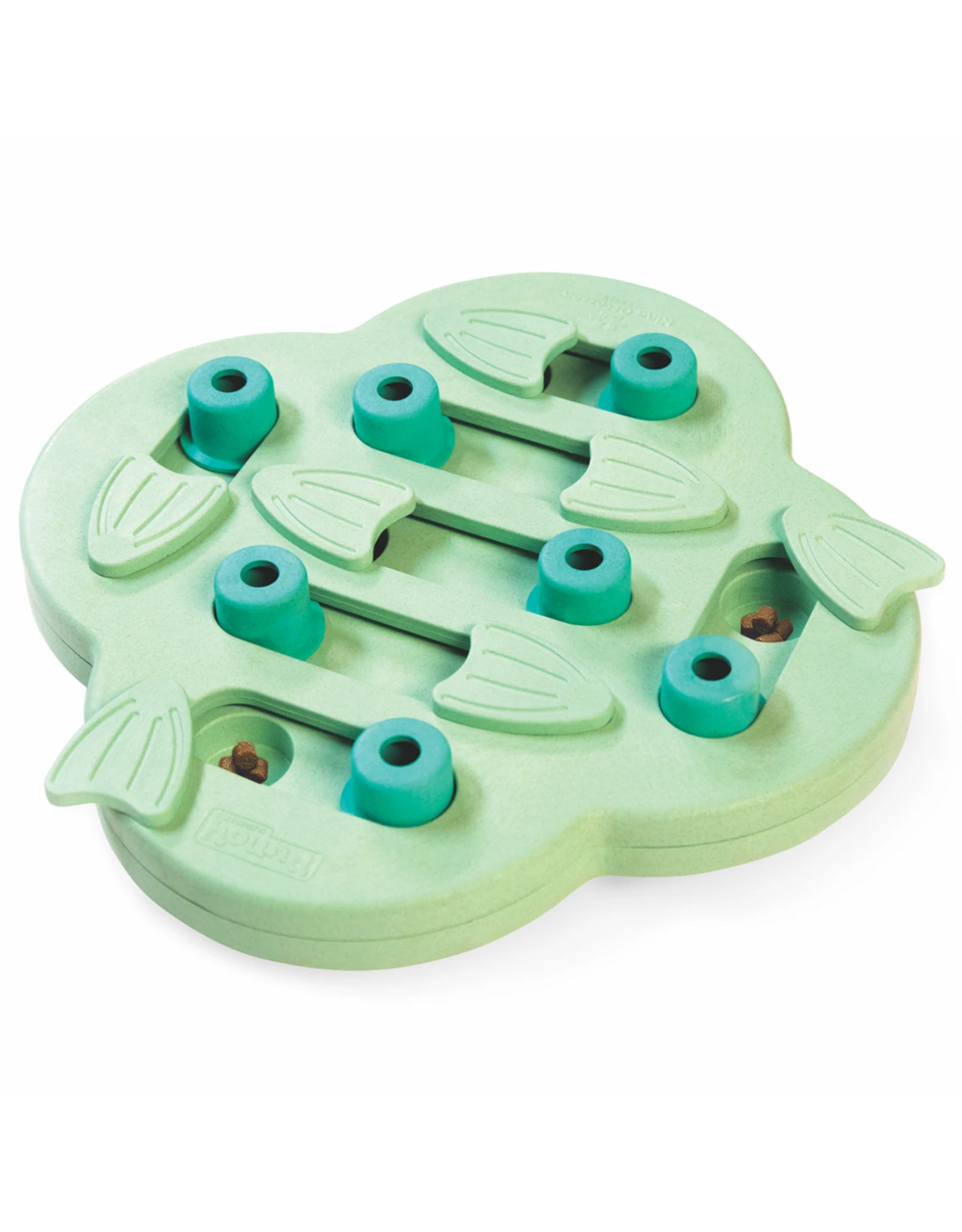 PLAY TOGETHER: Nina Ottosson Dog Puzzle Games focus on challenging your dog’s brain. Supervise when playing, and don’t let the dog chew on the toy. Teach your dog how to use the puzzle, play and have fun together. Put away until next time.
