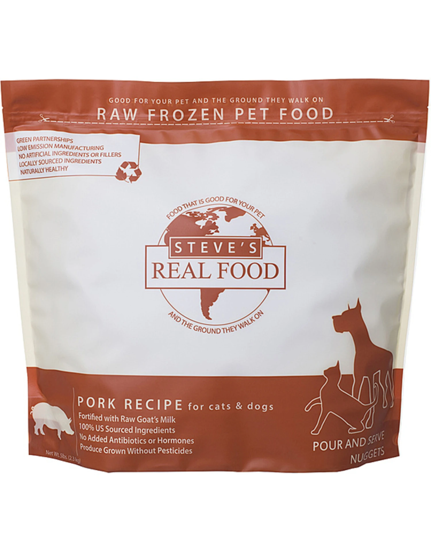 Steve’s Real Food’s Pork Diet is a unique cooling food that is great for pets with allergies. Additionally, their Pork Diet contains chia seeds, which boost its cooling properties and is great for detoxing. One of the differences between Steve’s and other raw meat diets is their meat-to-veggie ratio of 80% to 20%. This provides your pet with the protein and essential vitamins and minerals that help fight disease and promote strong bones, muscles, and organ function.