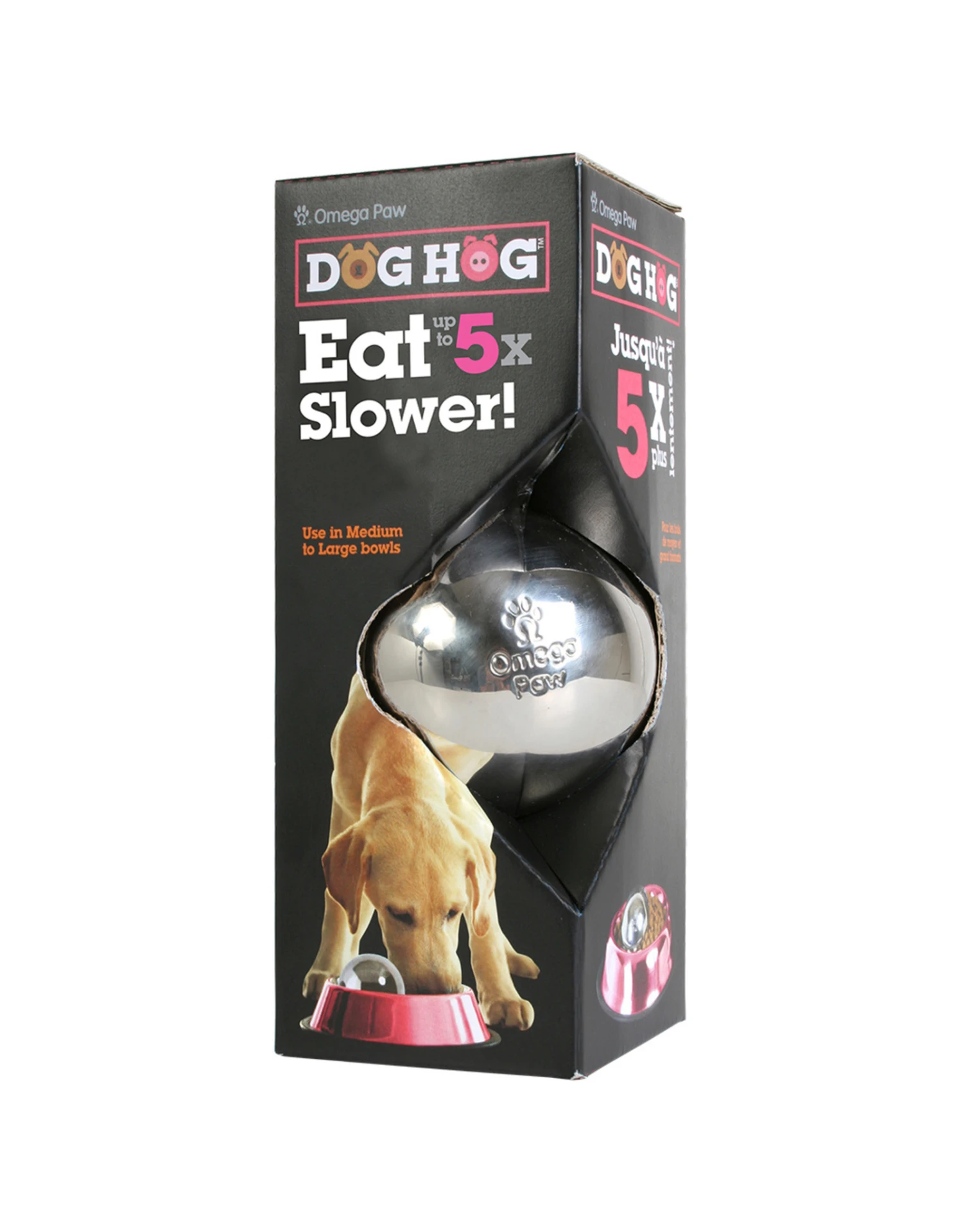 Place the Dog Hog into your pet’s food bowl and pour the recommended amount of dog food into the bowl. Then watch and be amazed at how the Dog Hog slows down how fast your dog eats and drinks from their bowl.