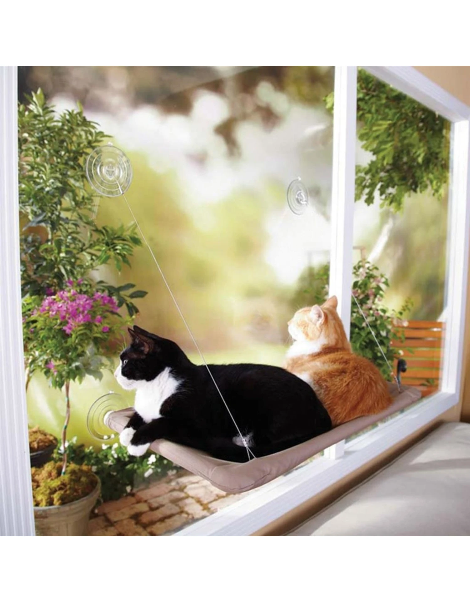 Provide your cat with an outdoor view and a warm place to rest with the Sunny Seat Cat Window Bed! Say goodbye to bulky cat condos and other beds and say hello to the Sunny Seat. Installs in seconds to glass windows and doors and features industrial strength suction cups that hold up to an amazing 50 pounds! The Sunny Seat provides your cat a front row view of nature, weather, people and more without taking up valuable floor space. Perfect for cats that like to bask in the warm sun or active cats that desire a high vantage point. Helps reduce separation anxiety and keep messy hair off of your furniture. Ideal for multiple cat households!
