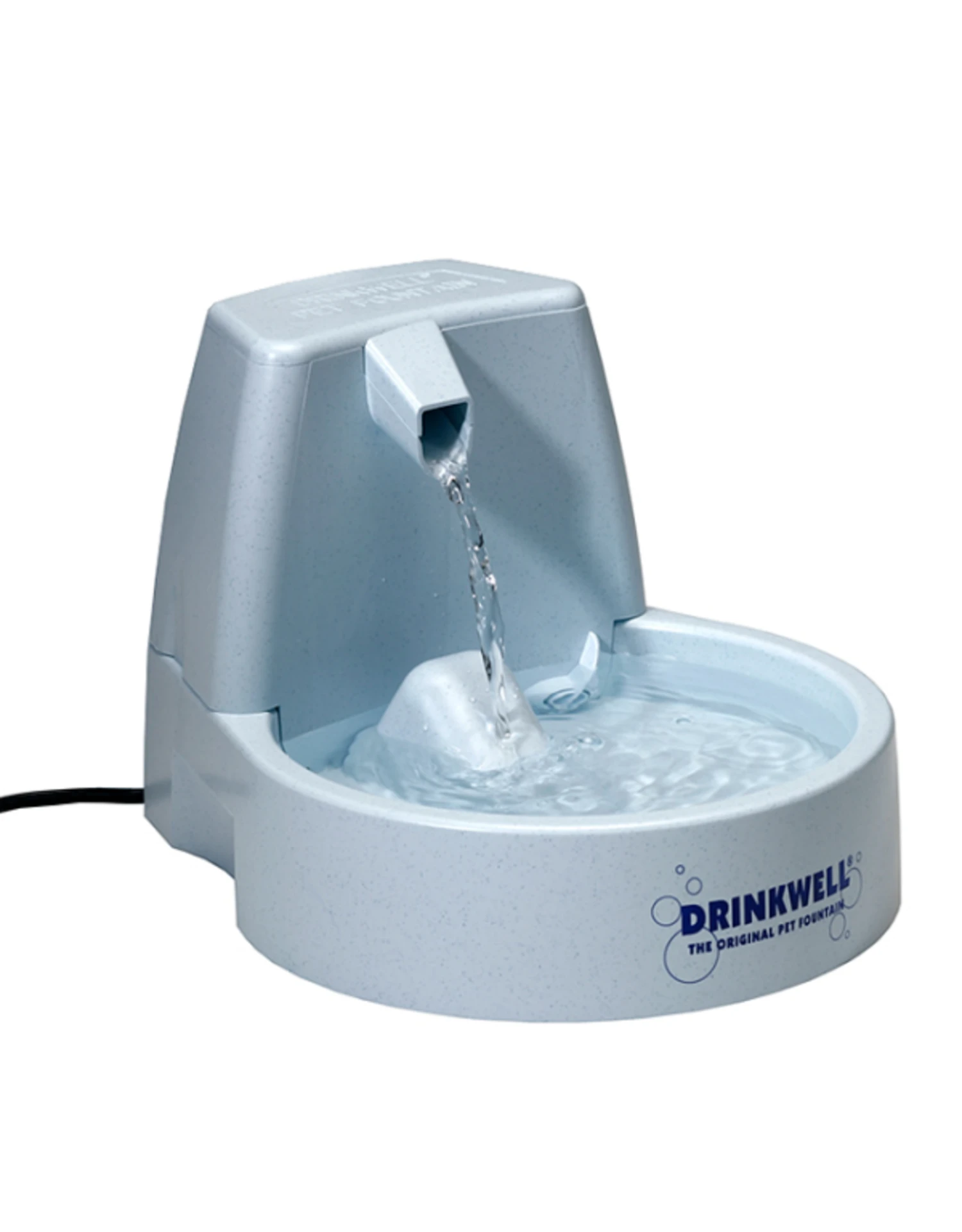 The Drinkwell Original Pet Fountain uses an innovative watering system featuring a patented free-falling stream of water and holds 1.5 liters of water. The free-falling stream entices pet’s to drink more water because it draws more oxygen into the water and constantly breaks the surface tension, keeping water fresh tasting. For added freshness, the included charcoal filter also helps to remove bad tastes and odours from the water. Dishwasher safe (excluding pump). Replacement filters 298-13067 & 298-70710.