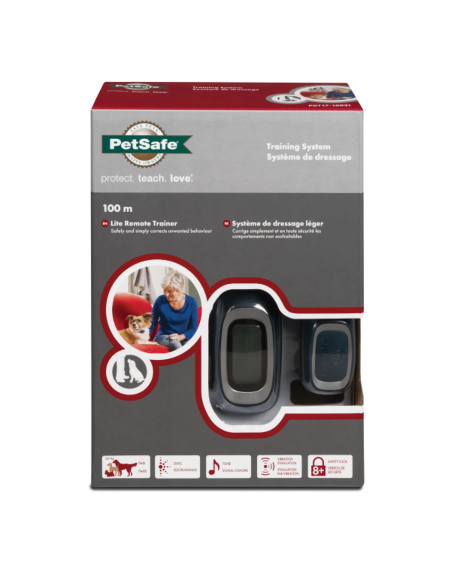 Using the PetSafe 100 M Lite Remote Trainer you can easily improve the communication between you and your dog. The remote sends a signal activating your dog’s training collar. With three training options, tone, vibrations and static stimulation, you can ensure you will have a well-trained dog in no time. The 100 Meter Remote Trainer is particularly suited for small to medium dogs – great for around the house training. The system includes training collar with adjustable nylon strap, digital remote, long and short contact points, USB charging cable, test light tool and quick start guide.