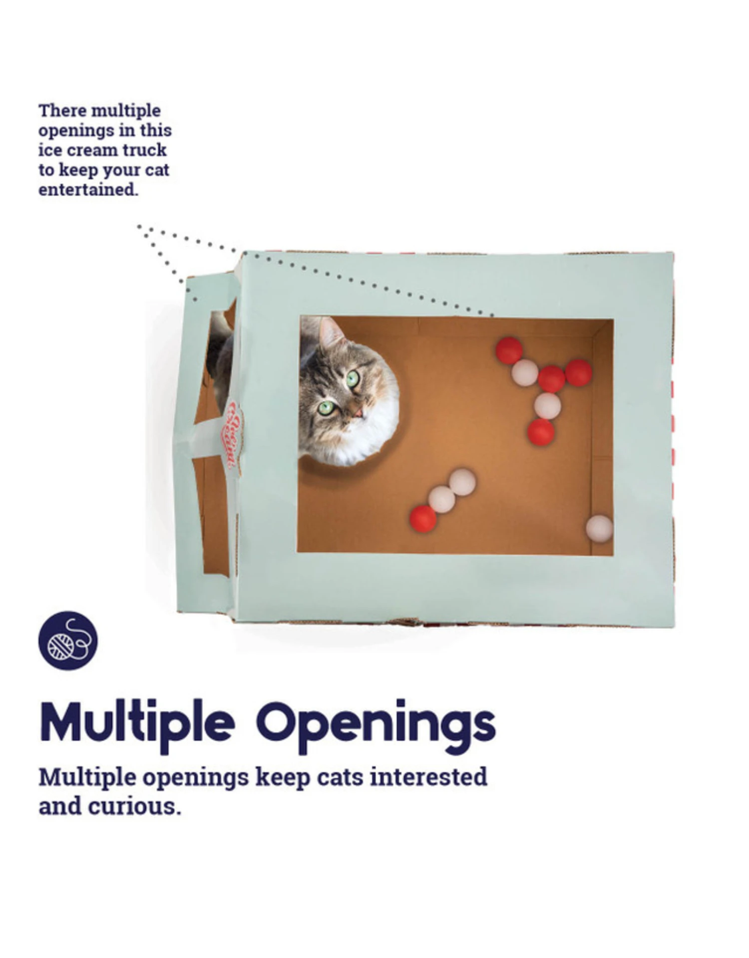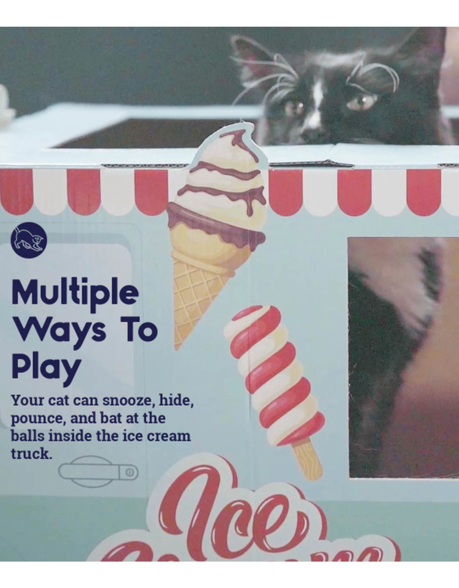 - multiple ways to play:Your cat can snooze, hide, pounce, and bat at the balls inside the ice cream truck.
