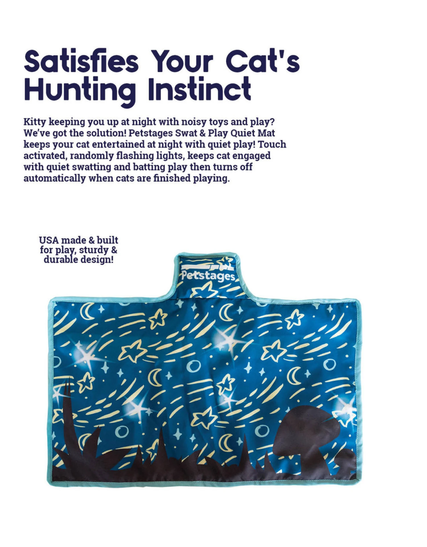 - quiet nighttime play:Petstages Swat & Play Quiet Mat was designed with quiet nighttime play in mind so kitty won’t wake pet parents!