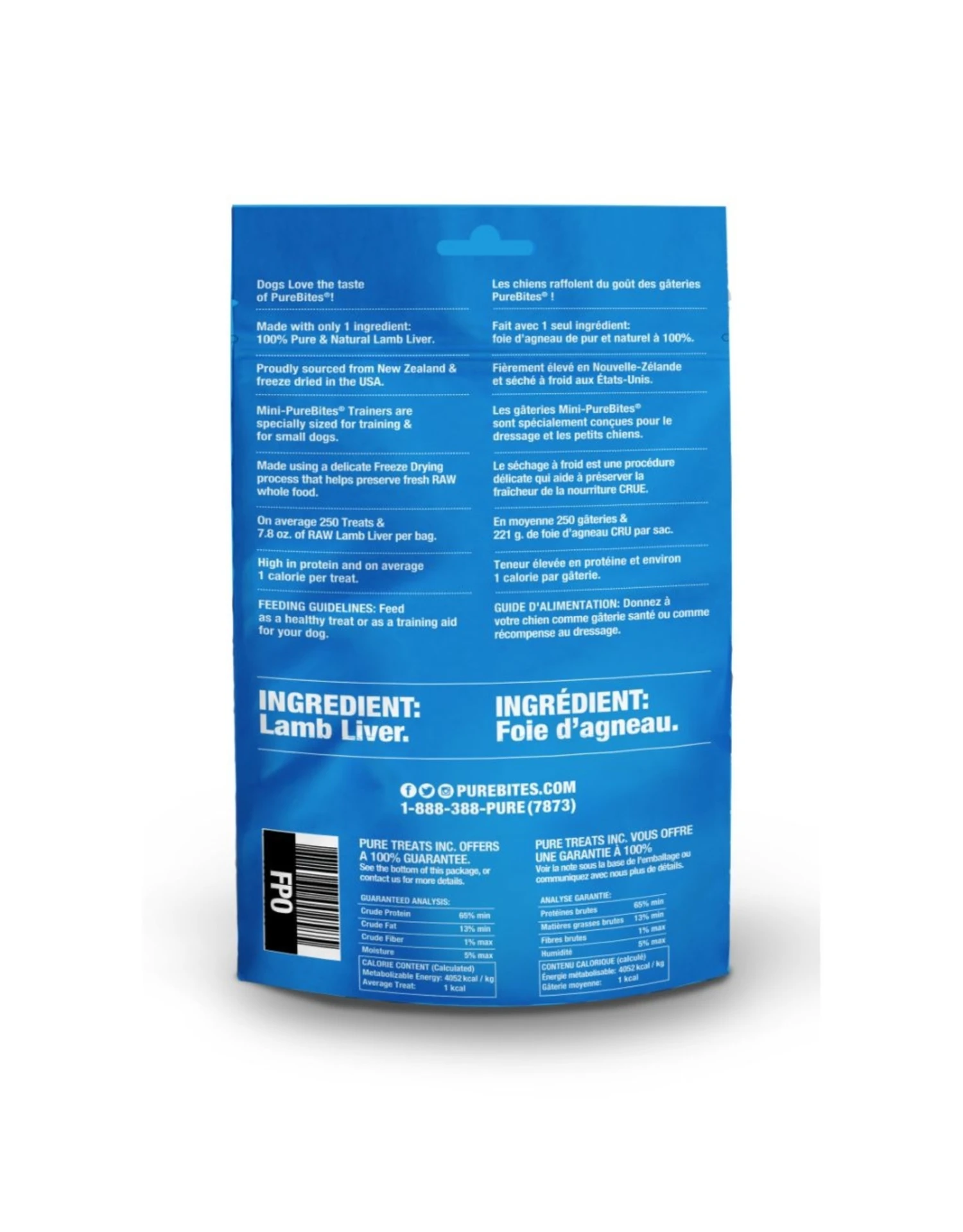 Go ahead, turn the bag around and look at the ingredients… Mini PureBites Training Treats are made with only 1 human grade ingredient. Try PureBites Mini Training Treats for a happy and healthy life.