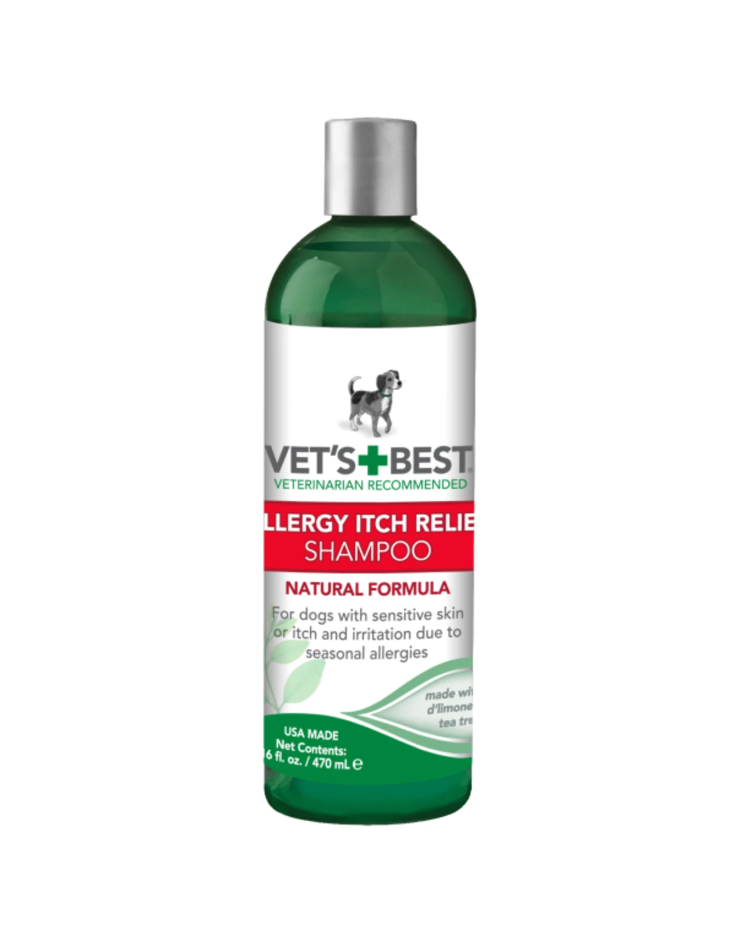 Vet’s Best Allergy Itch Relief Shampoo moisturizes skin and soothes incessant itching. Essential botanical oils calm skin irritation. Vet’s Best Allergy Itch Relief Shampoo washes away allergens attached to fur & skin and can be used as often as necessary without drying skin. Key ingredients are oatmeal, d’limonene and tea tree oil. Use of this shampoo will not affect topical flea control products.